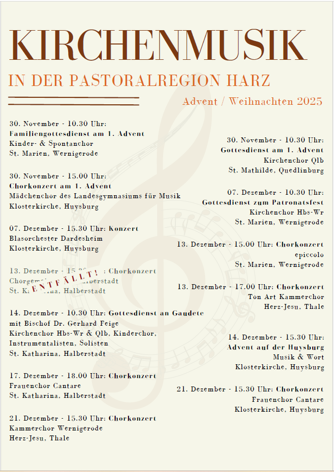 Kalender der Pastoralregion Harz